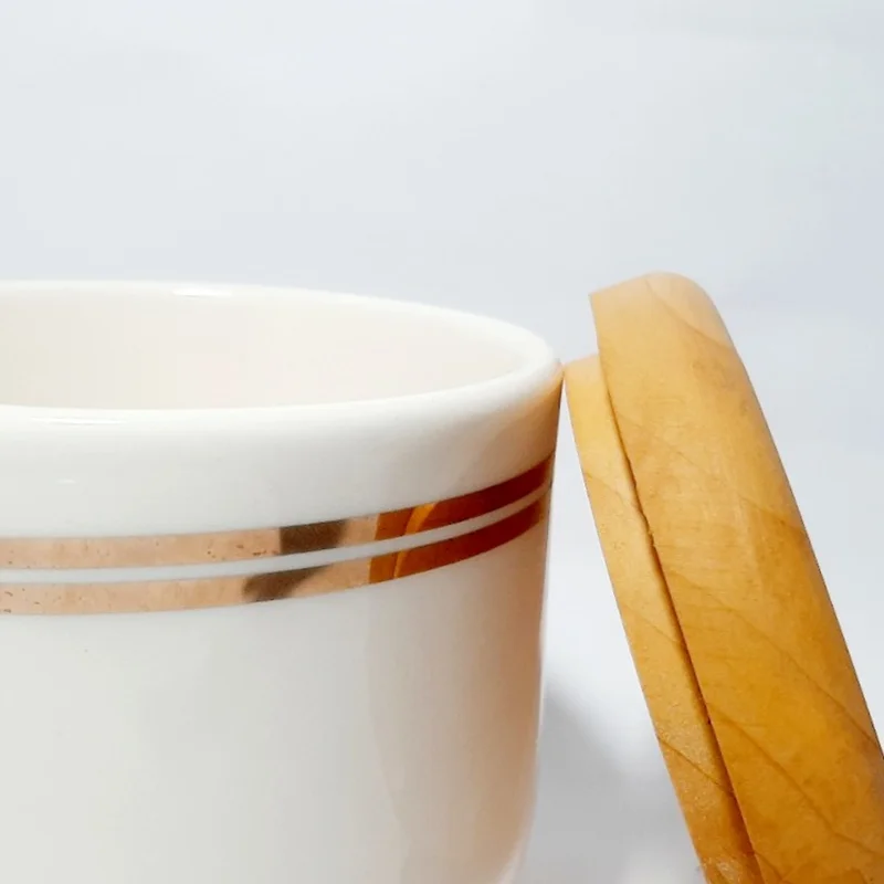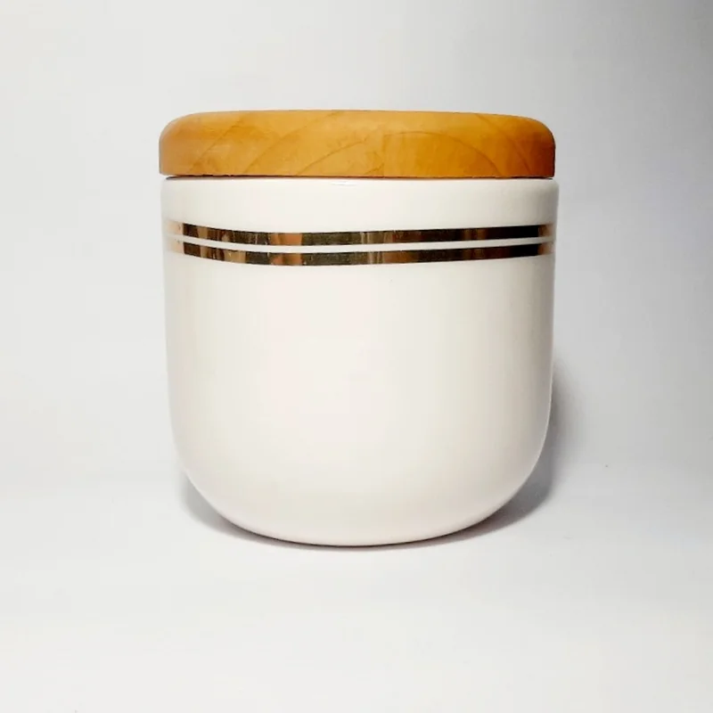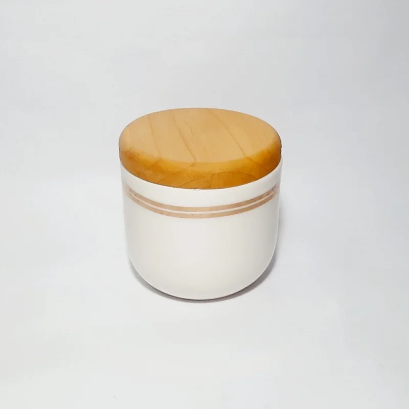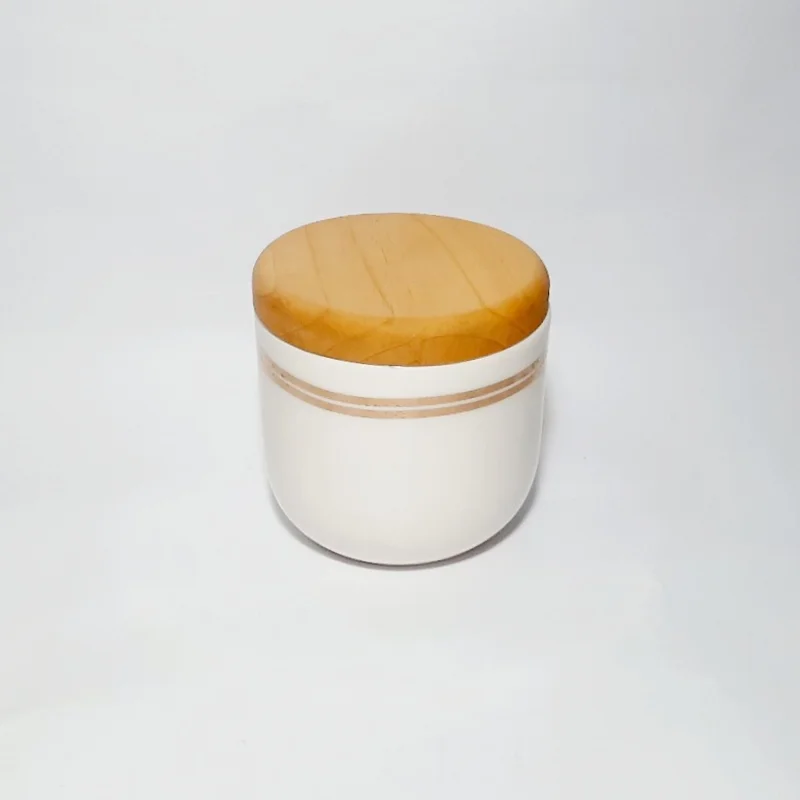 بانکه های سرامیکی دست ساز با درب چوب راش- درب با کیفیت بالا- ابعاد: در سه ارتفاع ۱۴ سانتیمتر با قطر ۱۰.۵ سانتیمتر- کاملا مصرفی و قابل شستشو.