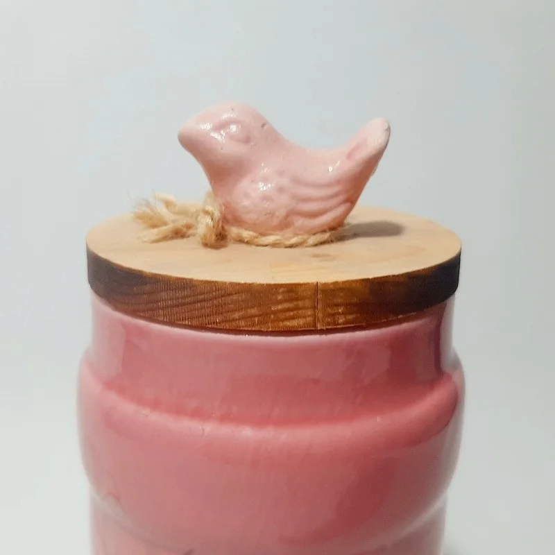 بانکه سرامیکی لعاب خورده با درب چوبی جوجه دار- مناسب پاسماوری- جا ادویه- قندان - نقل و نبات و...
