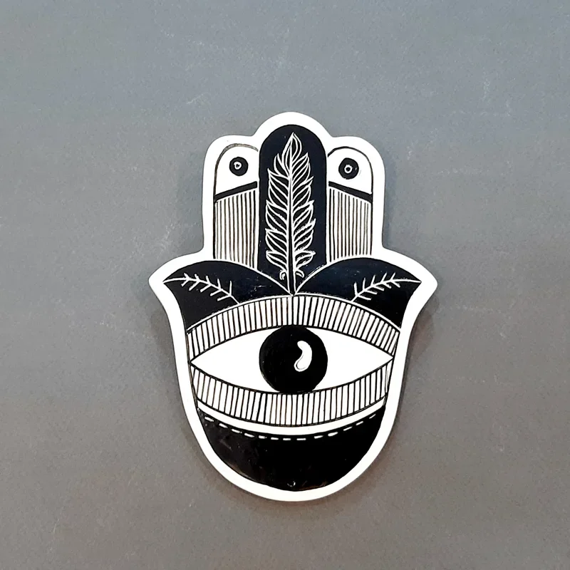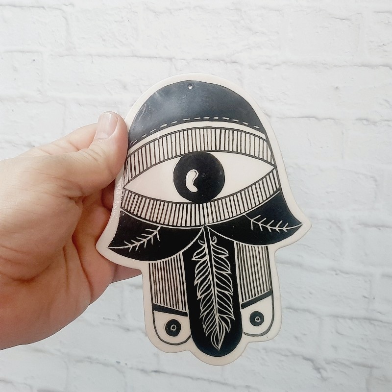 آویز سرامیکی دکوراتیو طرح حمسا- ابعاد ۱۶.۵ در ۱۳.۵ سانتیمتر- تمام کارها دارای بندآویز کنفی میباشند- کارها لعاب خورده و کوره رفته میباشند. یک کار شیک و عالی- با حذف بند، بعنوان جاعودی نیز قابل استفاده میباشد.