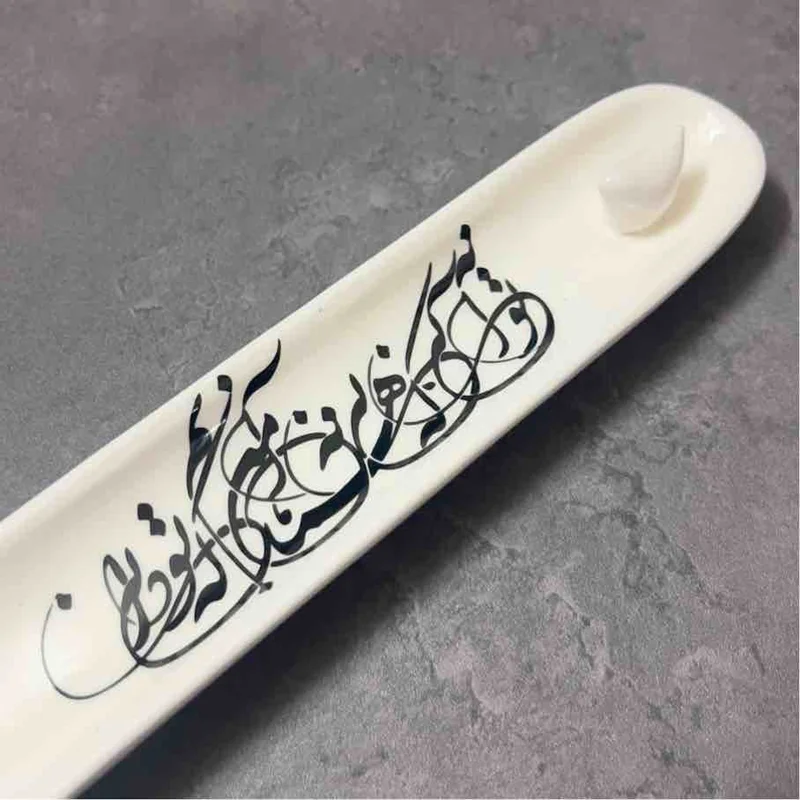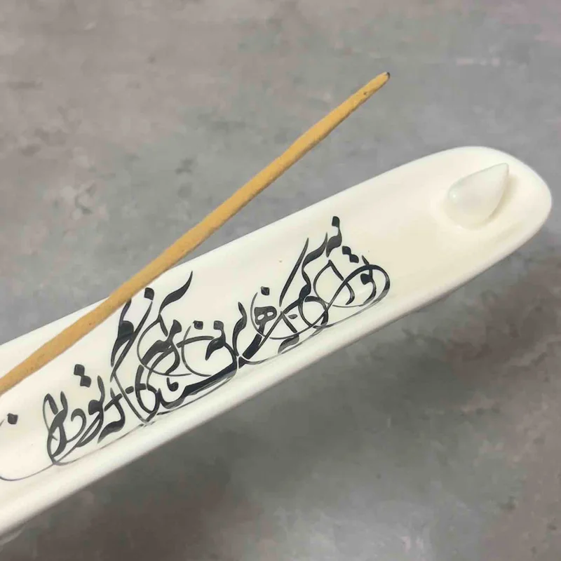 عود سوز سرامیکی دستساز شعر نوشته -دارای ۴عدد پایه کوچک- عودسوزها کوره رفته اند و نوشته ها در کوره تثبیت شده اند و کاملا ثابت و قابل شستشو میباشند. متن: نه تو آنی که همانی من نه آنم که تو دانی