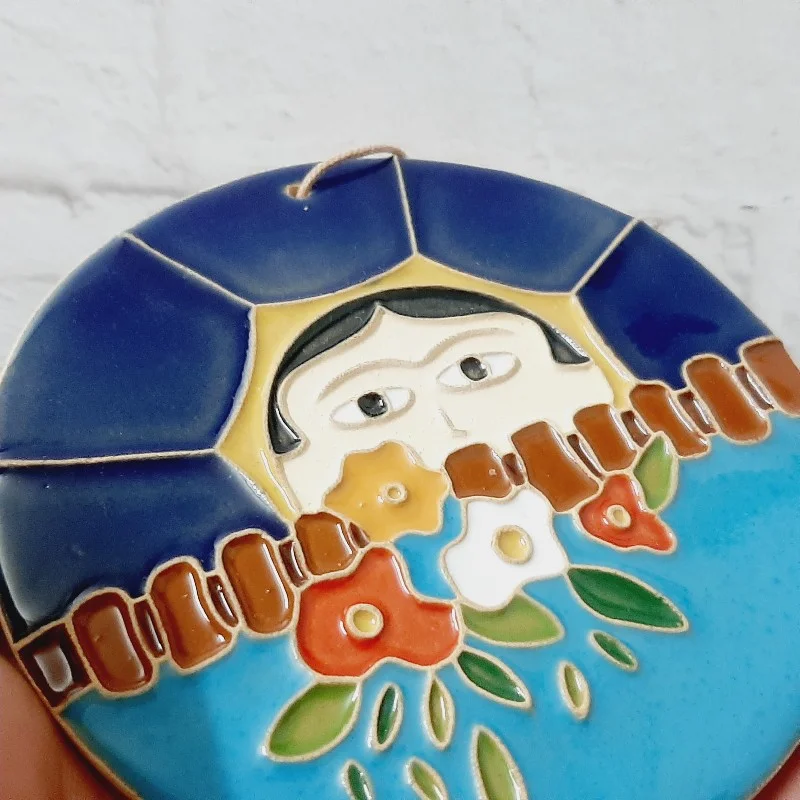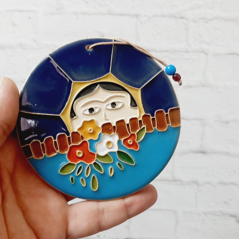 آویز کاشی- قابل شستشو- لعاب خورده و طرح برجسته میباشند- ابعاد قطر ۱۱ سانتیمتر-