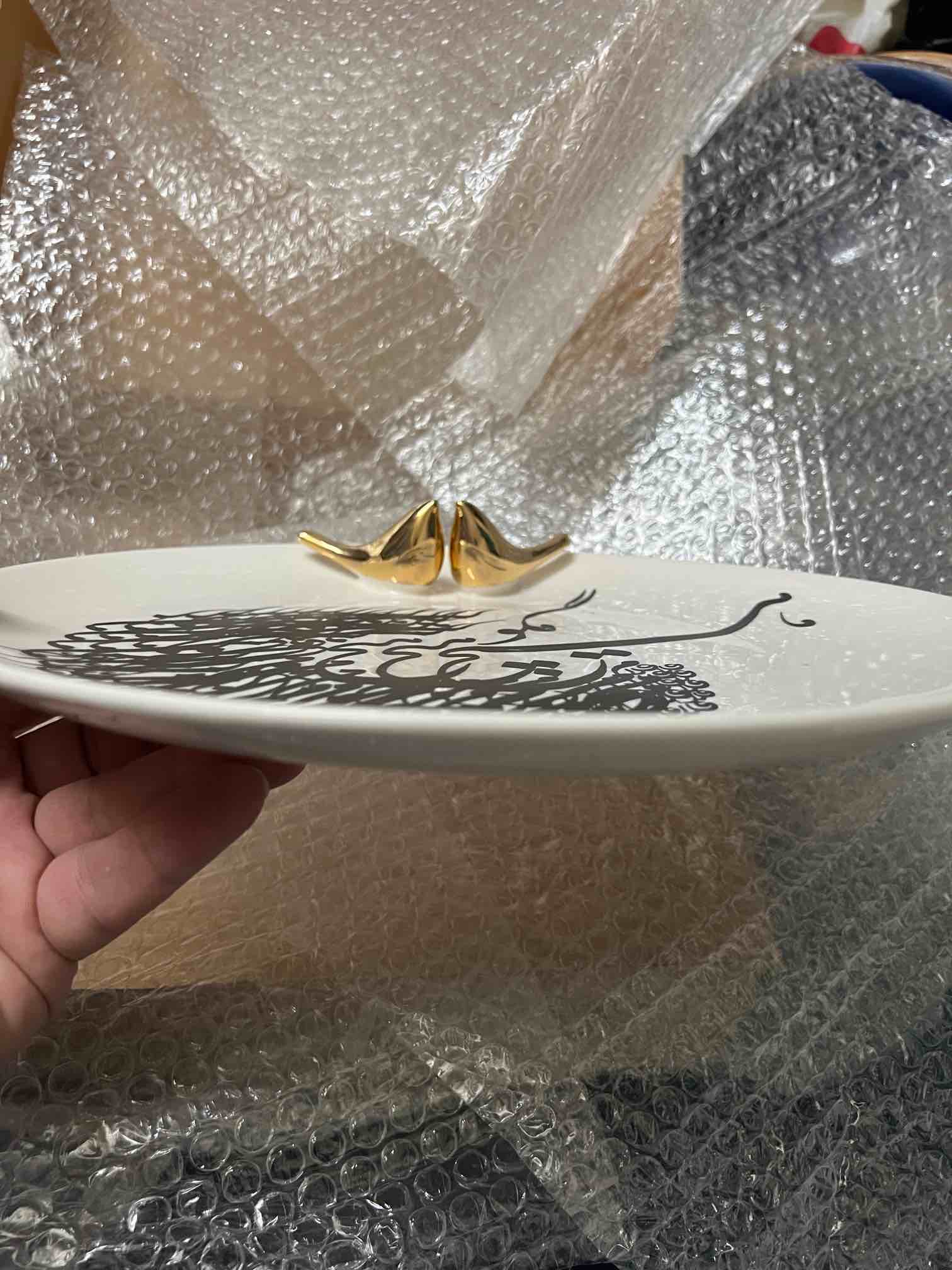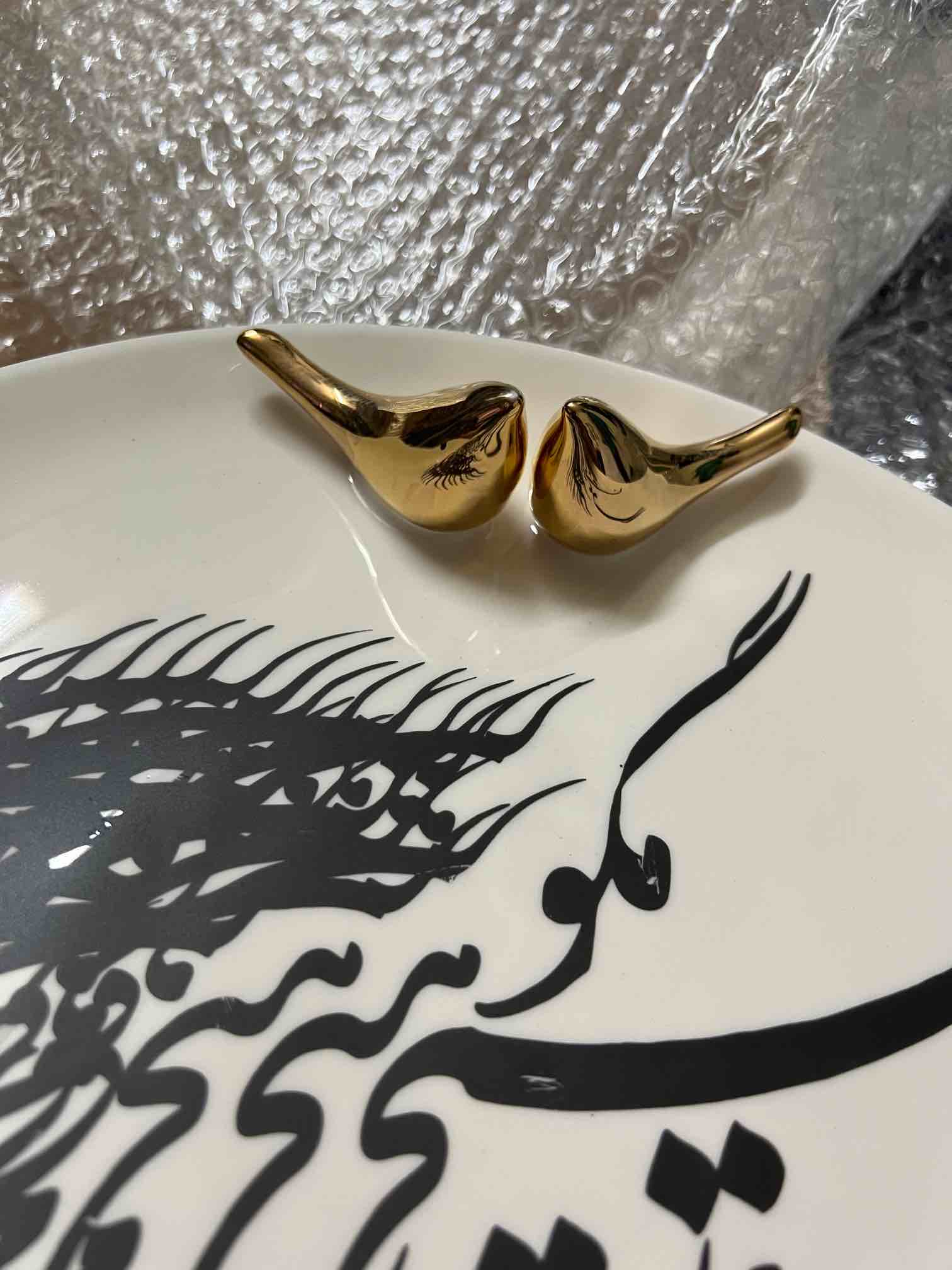 دیس گرد خطاطی تکنسخه، سرامیکی و دستساز- نوشته روی ظروف نوشته مشکی و پرنده لعاب لاستر طلا میباشد- بدلیل کوره رفتن کارها، طرح روی ظروف و رنگ طلایی پرنده ثابت بوده و با شستشو تغییری در آن ایجاد نمیشود.